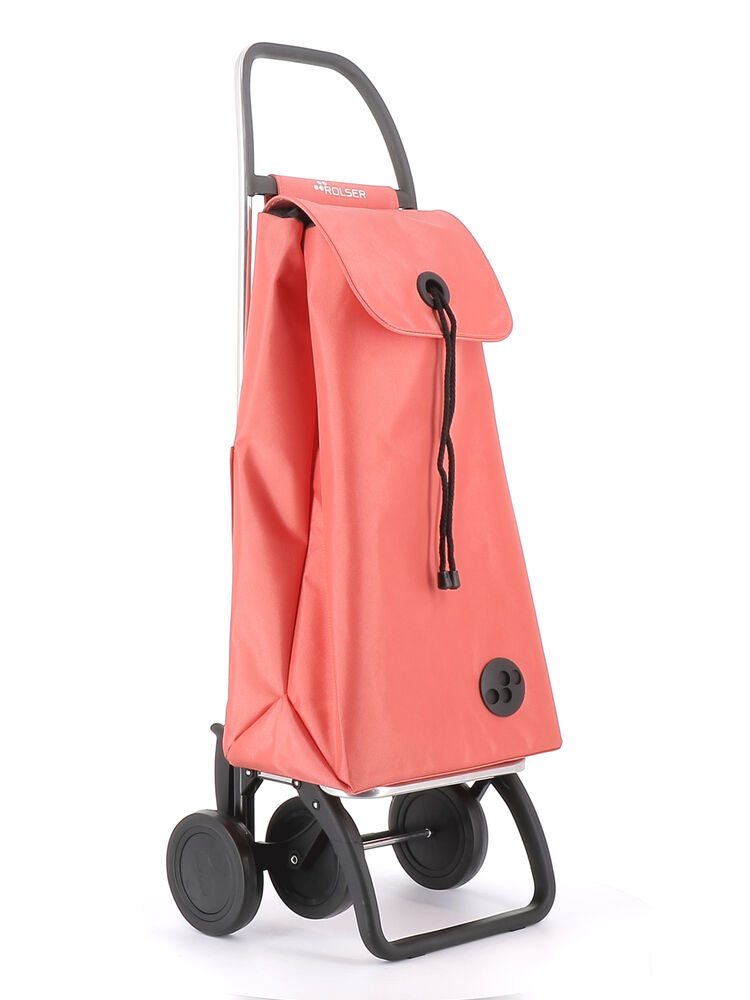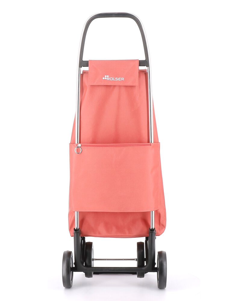 Carro Rolser de aluminio de 2/4 ruedas, para evitar cargas innecesarias. En posición de dos ruedas para llevar detrás cuando está vacío, y empujando delante cuando está lleno con 4 ruedas. Chasis con apoyo delantero y base inferior abatible para guardar en espacios pequeños. Te ayudará con cualquier tipo de traslado de pequeñas cargas. Perfecto para llevar la carga de la lavandería, playa, shopping, pesca, gimnasio, etc… La bolsa I-MAX tiene formato tipo mochila, doble bolsillo interior, cierre con cordón, ojal en la solapa, bolsillo trasero con cremallera y se adapta fácilmente al chasis con una solapa.