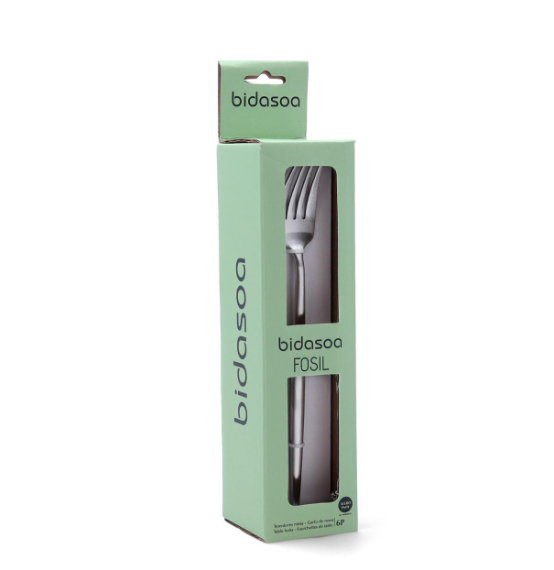 Cubertería de acero inoxidable con acabado en plata semi mate.