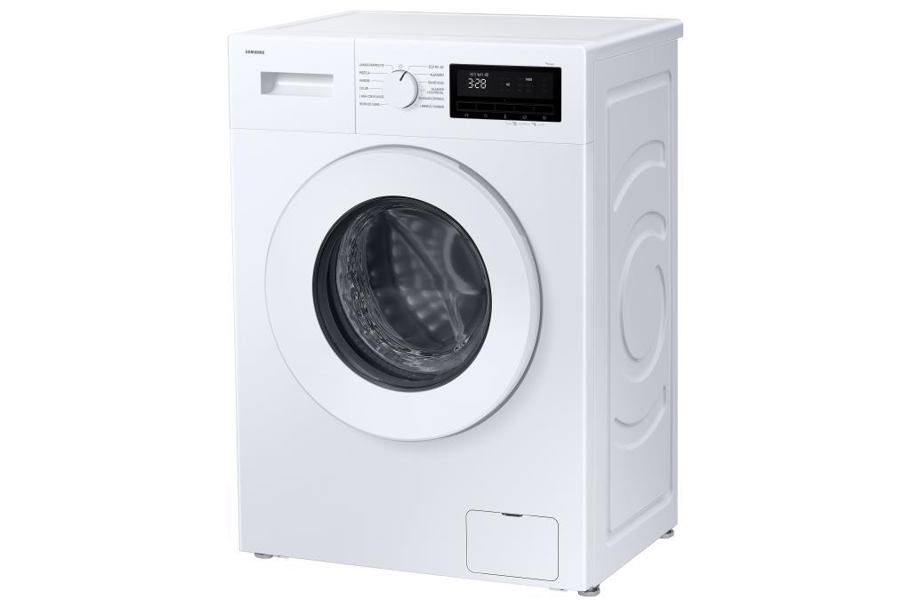 La lavadora Samsung WW70FG3M05TWEC es un modelo de carga frontal con 7 kg de capacidad, 1400 rpm de velocidad de centrifugado y un motor Digital Inverter eficiente y silencioso. Destaca por su fondo reducido, ideal para espacios compactos. Características Principales Capacidad: 7 kg de carga. Velocidad de centrifugado: Alcanza un máximo de 1400 rpm. Eficiencia Energética: Clasificación energética A. Motor: Incorpora un motor Digital Inverter, que es más duradero, silencioso y eficiente energéticamente, respaldado por 10 años de garantía según La Casa del Electrodoméstico. Dimensiones: Cuenta con un fondo reducido de aproximadamente 45,5 cm (o 49,5 cm según Cemevisa), lo que facilita su instalación en espacios ajustados. Display: Dispone de un display LED para un manejo intuitivo. Diseño: Es un modelo de libre instalación y color blanco. Funciones y Programas La lavadora ofrece una variedad de programas de lavado y funciones adicionales para adaptarse a diferentes necesidades: Programas de Lavado: Incluye 12 programas, entre los que se encuentran: Eco 40-60. Lavado rápido 15′: Un ciclo ideal para cargas pequeñas y poco sucias. Ropa de cama. Algodón. Colores. Sintéticos. Drenar/Centrifugar. Drum Clean: Un programa específico para la limpieza del tambor, asegurando la higiene interna. Hygiene Steam (Vapor Higiénico): Esta función de vapor ayuda a eliminar bacterias y alérgenos. Carga mixta. Aclarado + Centrifugado. Funciones Adicionales: Control automático de carga: Ajusta el consumo de agua y energía según la cantidad de ropa, optimizando cada ciclo. Programación diferida: Permite establecer la hora de finalización del ciclo para adaptarse a tu horario. Bloqueo para niños: Una función de seguridad para evitar cambios accidentales en la configuración. Indicador de tiempo restante: Muestra el tiempo estimado hasta que finalice el lavado.