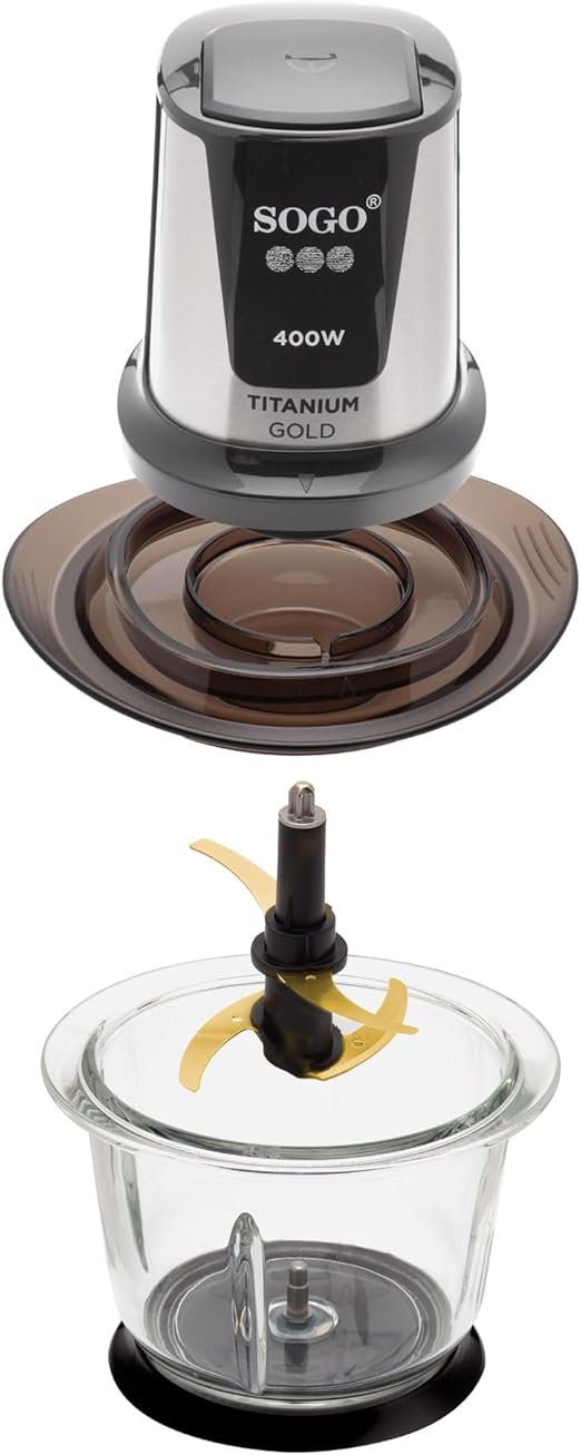 La picadora de alimentos SOGO PIC-SS-5260 es un procesador de comida eléctrico con un bol de vidrio de 1,5 litros y una potencia de 400W, diseñado para picar diversos alimentos, incluyendo carne, verduras, frutos secos y hielo.