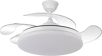 El ventilador de techo FABRILAMP Tridente 91D 59W Blanco es un modelo moderno con aspas retráctiles, motor DC, luz LED integrada y mando a distancia.